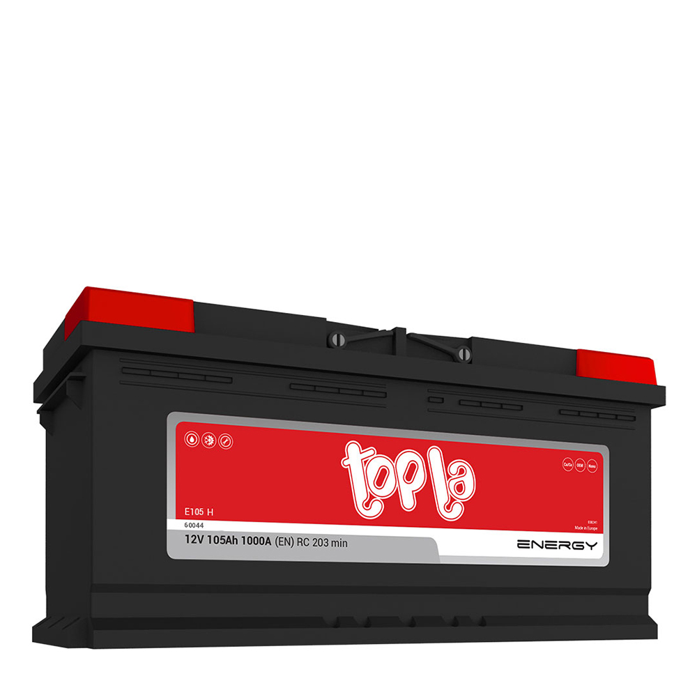 Тopla energy акумулаторите се произведени во водечка Ca/Ca со технологија на експaндиран метал. Topla energy е многу функционален акумулатор кој нуди одлична моќ, високи стартни струи при ладен старт на моторот и голема сигурност при неговата експлоатација. Ова е високо квалитетен производ прилагоден за возила од секоја класа, по димензии и капацитет, а се одликува со долг животен век и многу ниска потрошувачка на вода.
