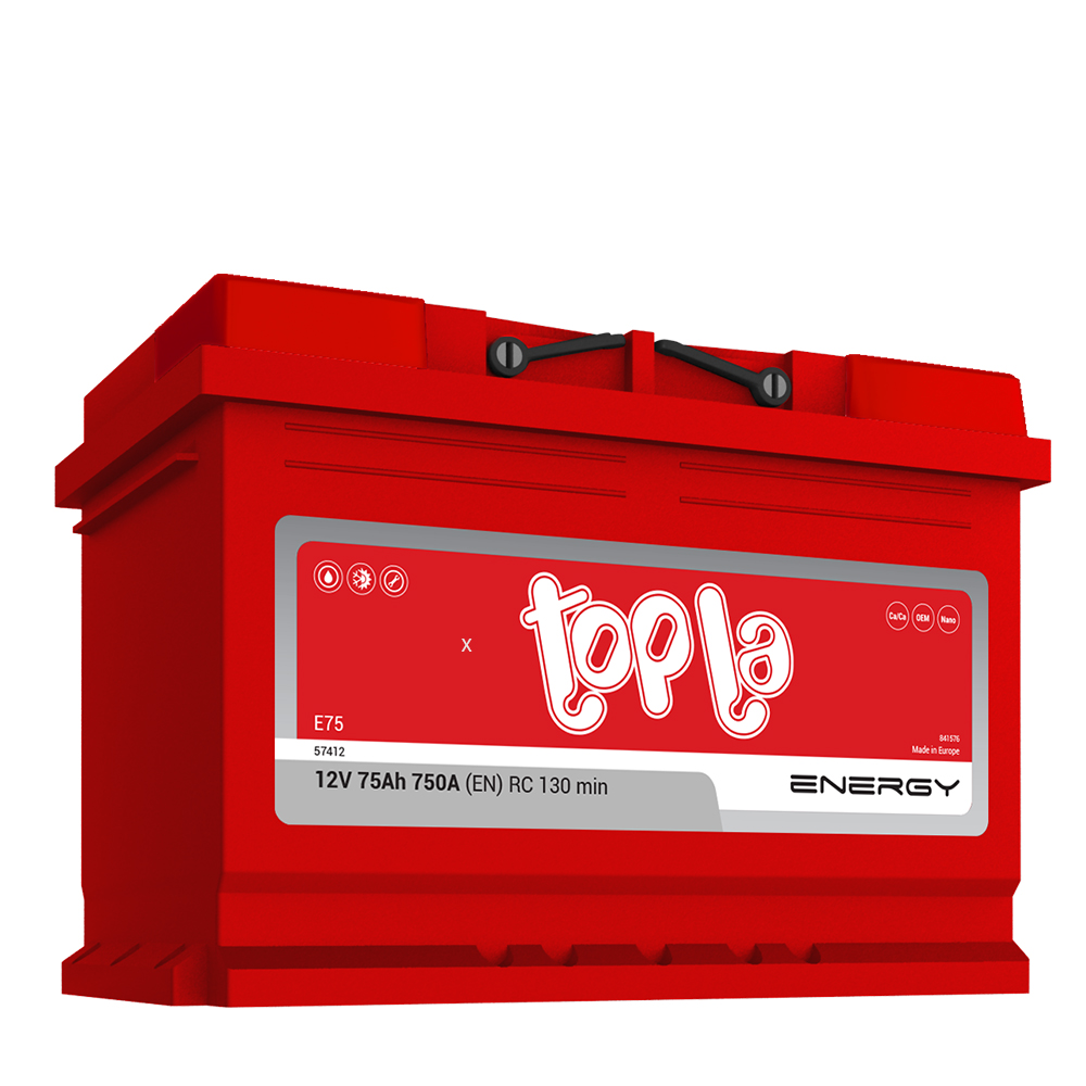 Тopla energy акумулаторите се произведени во водечка Ca/Ca со технологија на експaндиран метал. Topla energy е многу функционален акумулатор кој нуди одлична моќ, високи стартни струи при ладен старт на моторот и голема сигурност при неговата експлоатација. Ова е високо квалитетен производ прилагоден за возила од секоја класа, по димензии и капацитет, а се одликува со долг животен век и многу ниска потрошувачка на вода.